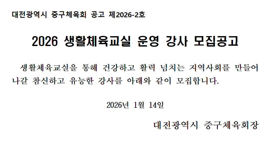 2026 생활체육교실 운영 강사 모집공고